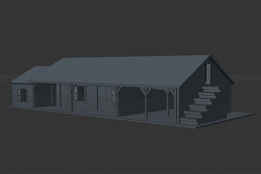 Model and render of the storehouse in Cinema4d