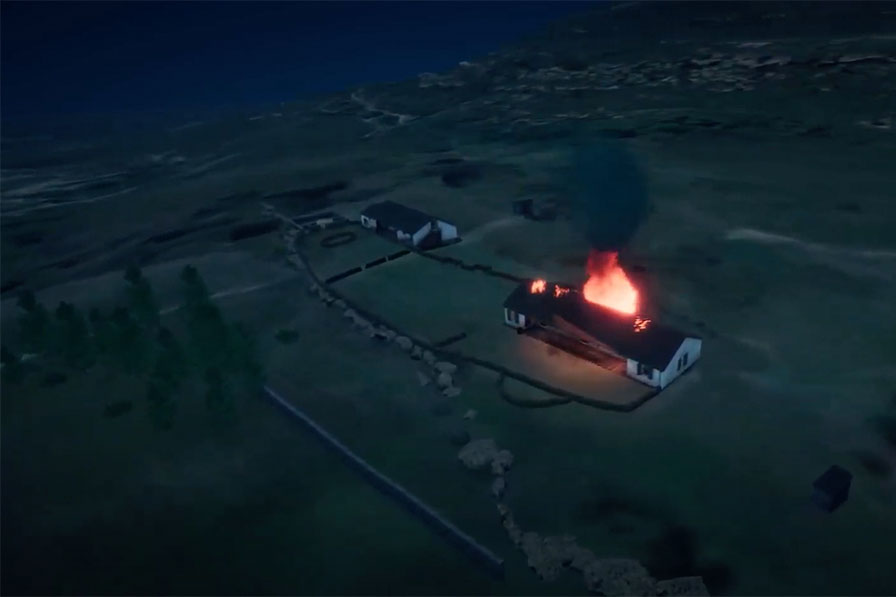 A nighttime view was also created to show how, as the battle centred on the hospital building into the night, the roof became ablaze. This allowed narrators to describe the events of the battle, accompanied by a scene displaying the key objects that influenced proceedings.