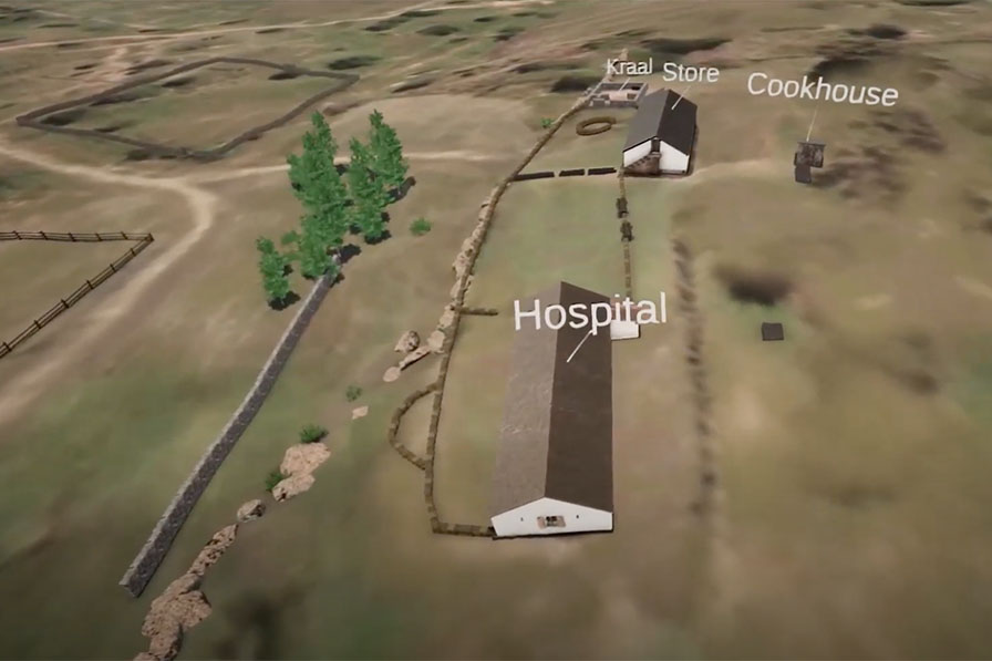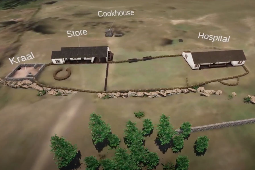 We were approached by Battle Guide to create a 3d visual piece to support a video they were producing detailing the Battle of Rorke's Drift. The visual was to help show the layout of the complex and how it was adapted to build a defensive position as the battle played out.